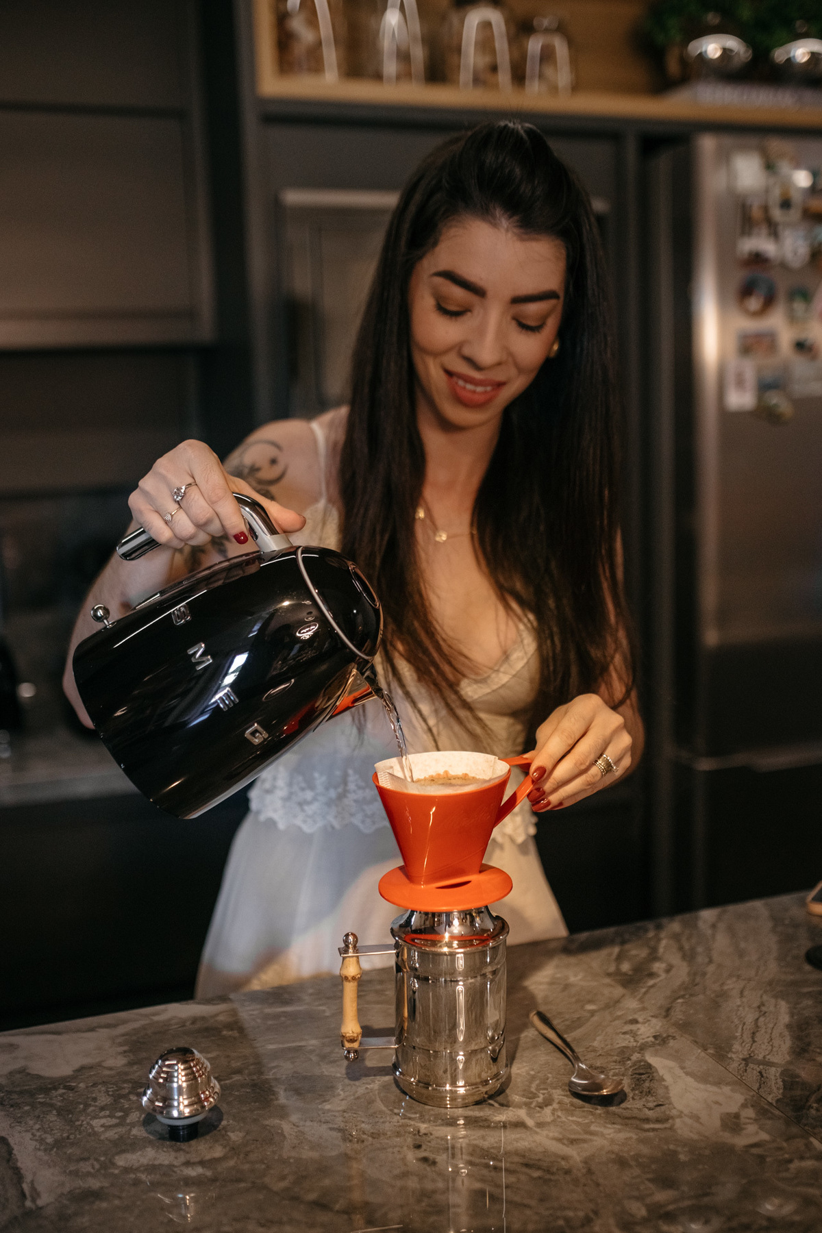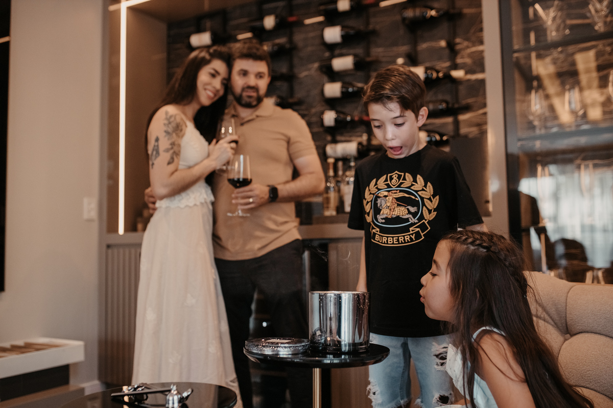 Começamos a sessão na casa deles, onde a rotina ganha vida nos detalhes mais simples, como um café compartilhado. Fotografar onde a família vive o seu dia a dia nos permite capturar momentos genuínos, cheios de carinho e espontaneidade.