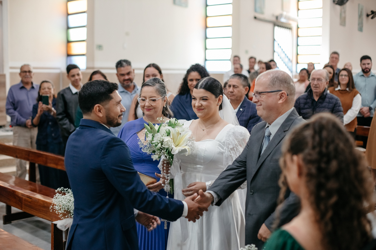Maria Cecília e Alexandro optaram por viver o essencial. Para eles, o mais importante sempre foi o sacramento. E isso ficou evidente em cada detalhe da cerimônia, cercada de pessoas que realmente fazem parte da vida e da caminhada deles.
