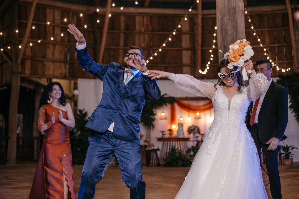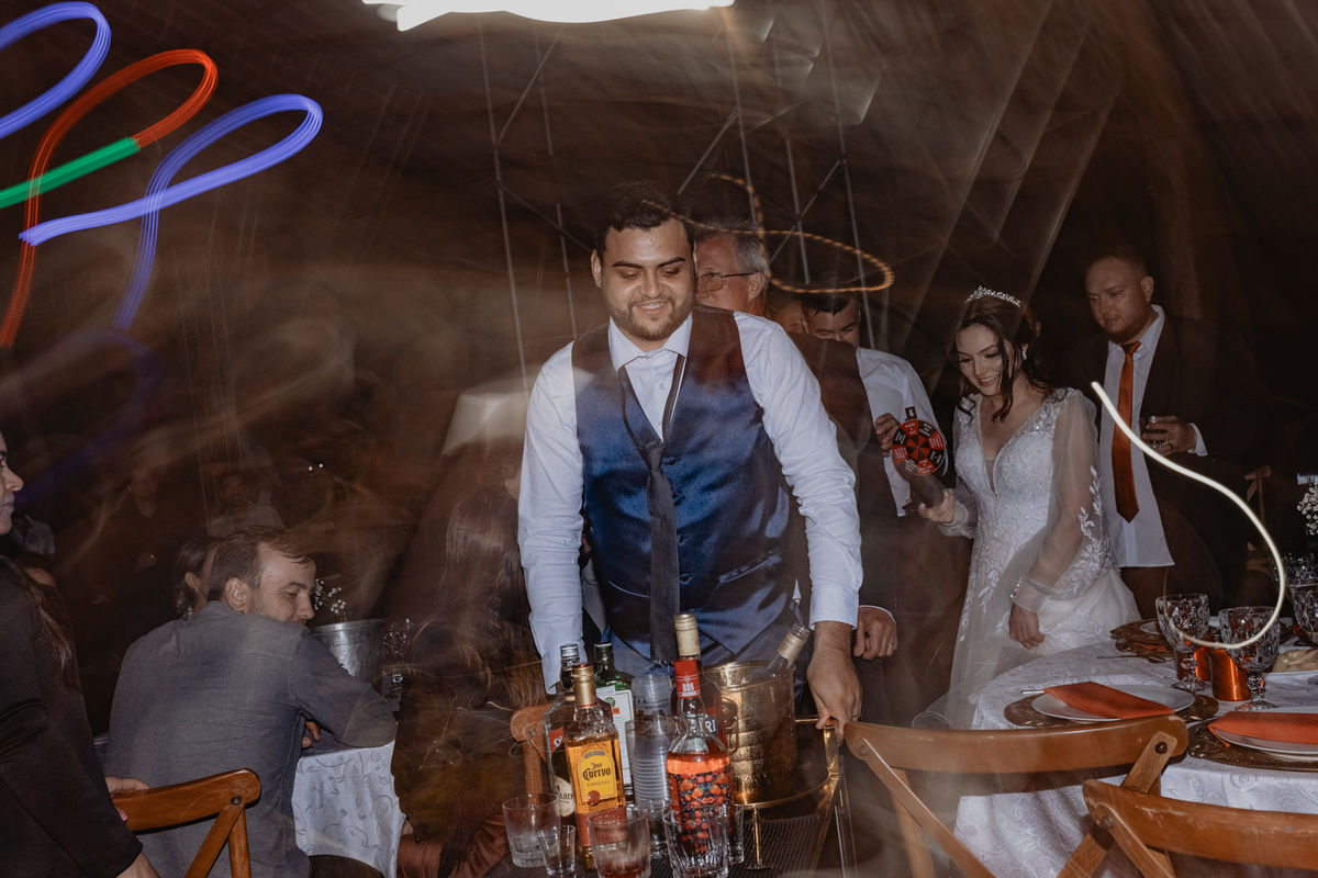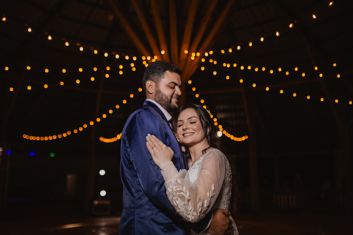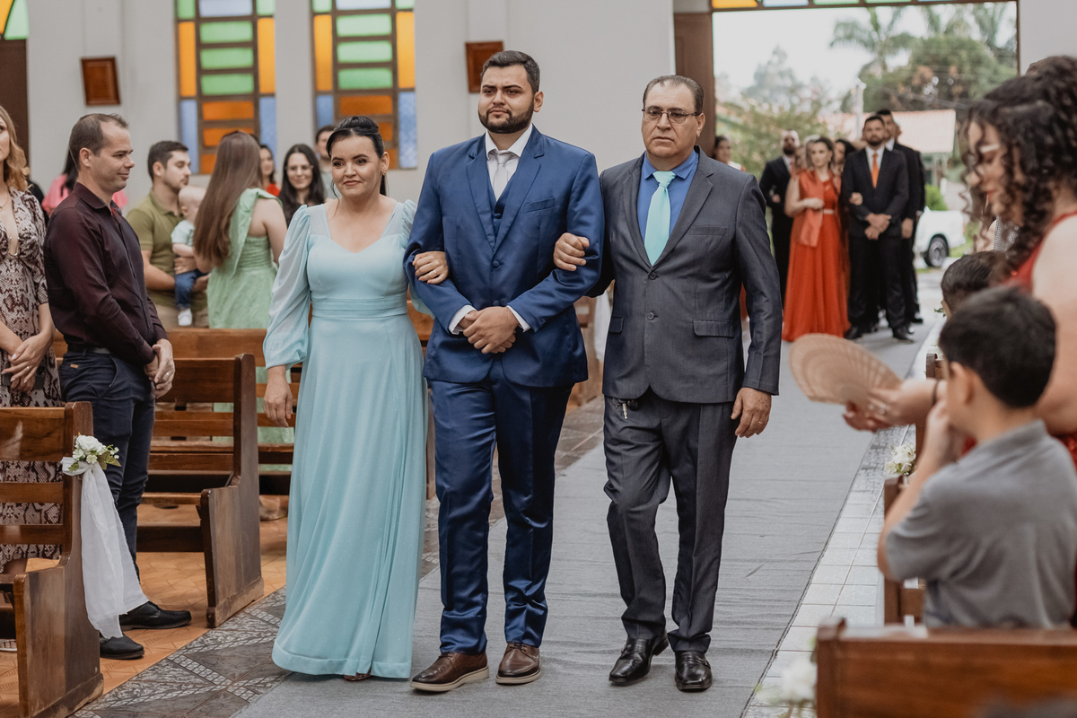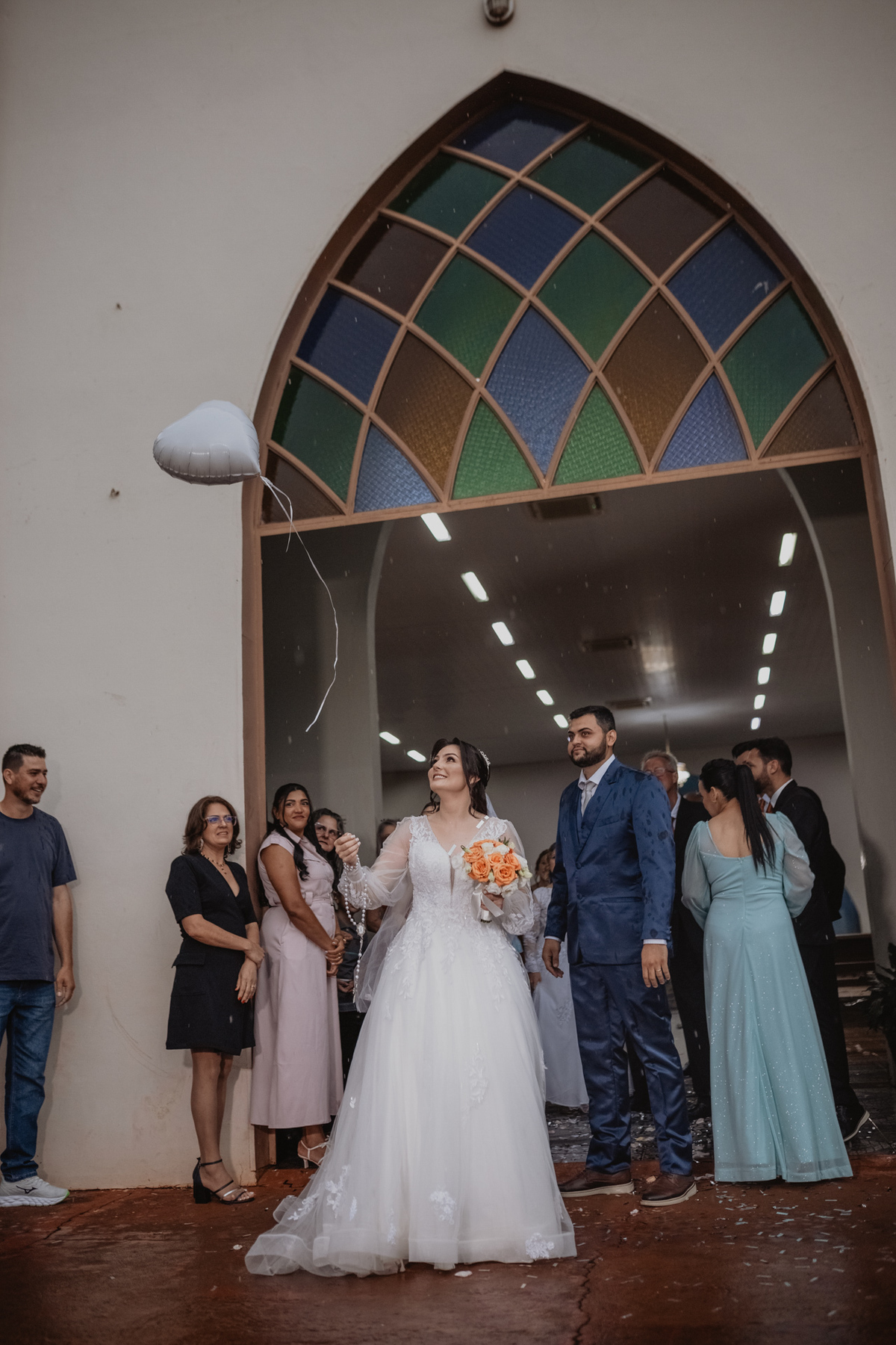 Com uma chuva de bênção marcando presença, foi uma cerimônia linda, cheia de emoção e fé, seguida de uma festa animada, onde os próprios noivos ditaram a vibe da festa.