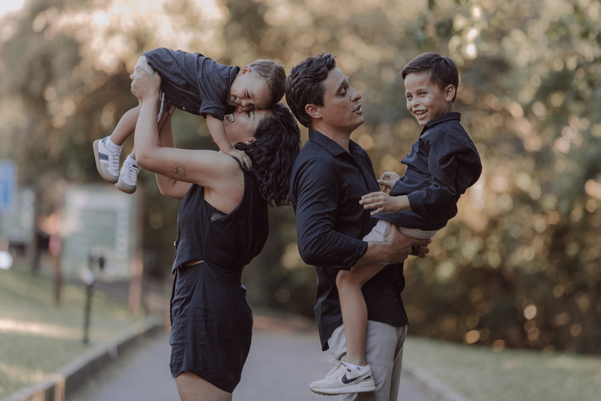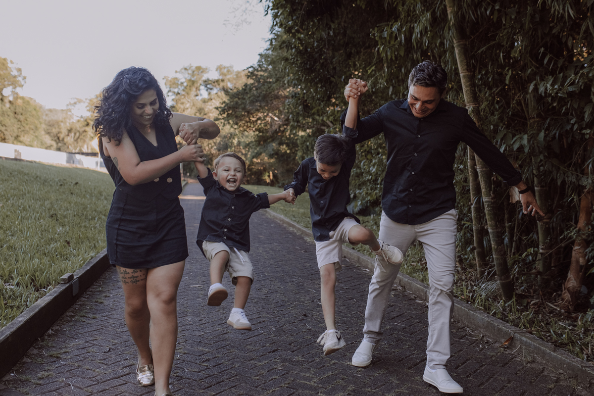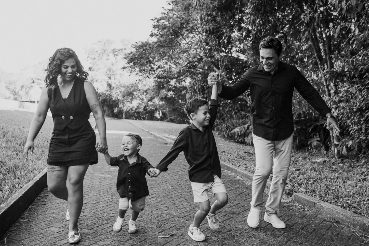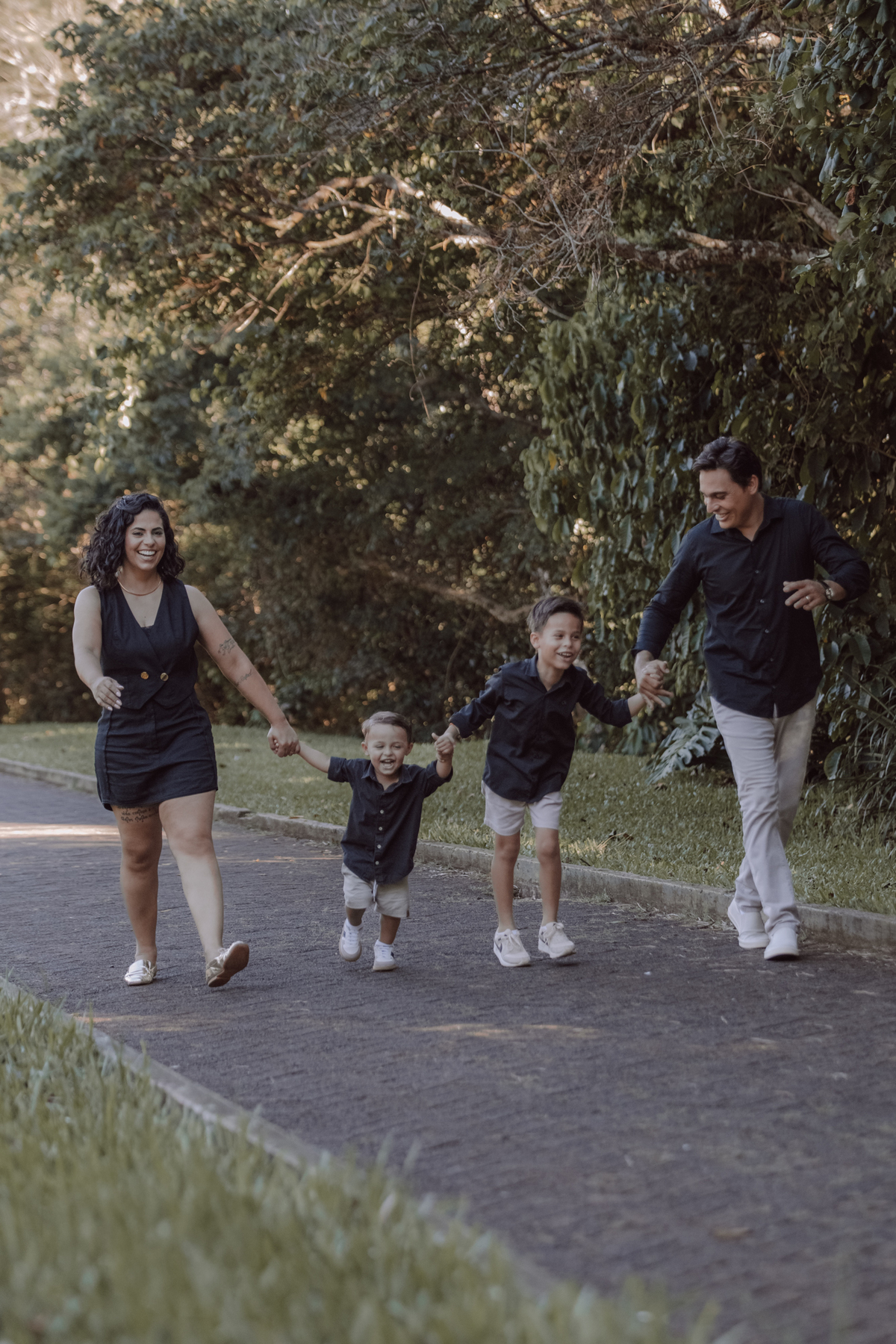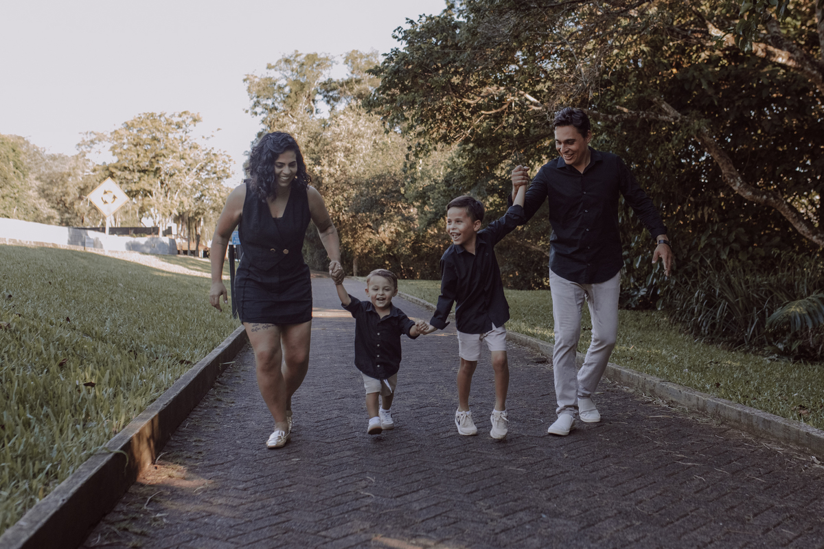 Começamos a fotografar com a família completa e, logo em seguida, fomos nos aproximando das enormes quedas d’água. No final, encerramos o ensaio todos molhados, mas com alegria e uma experiência bacana.